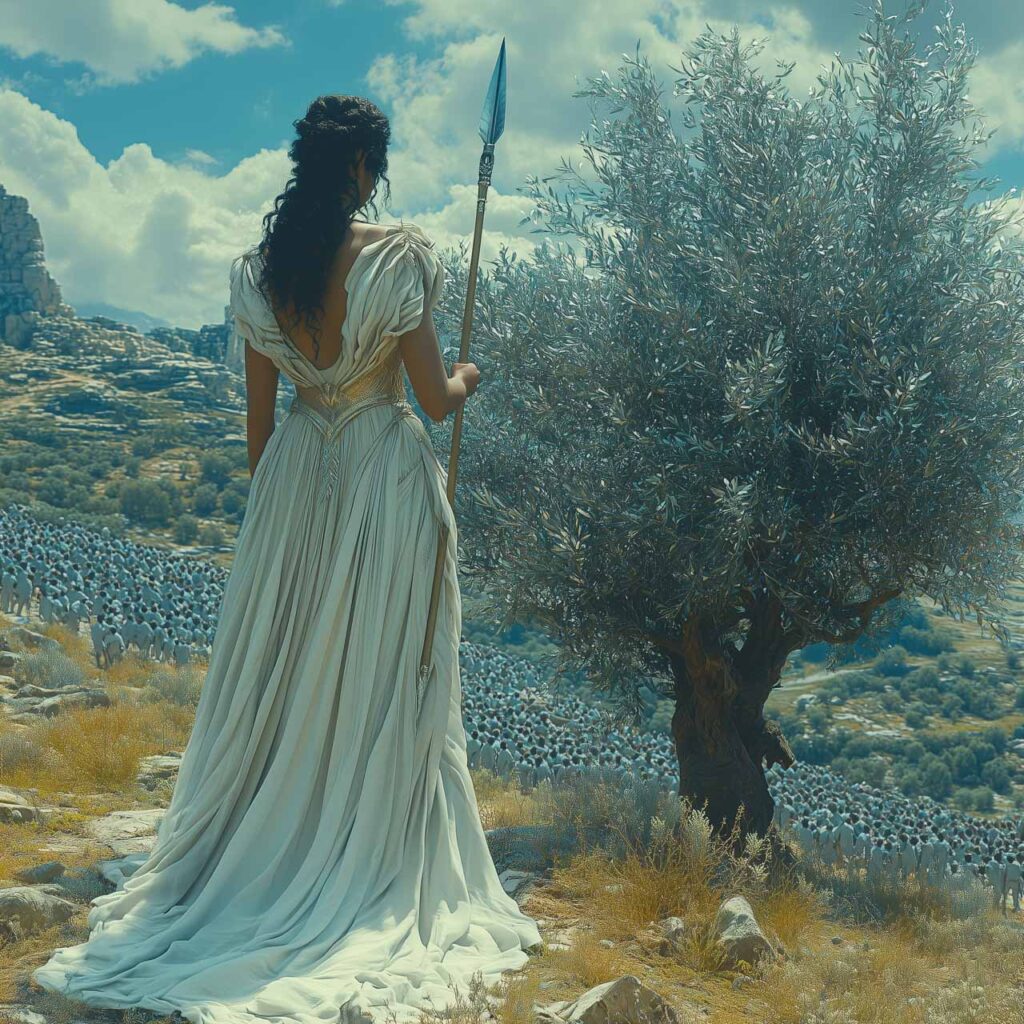 Um den Streit zu beenden, wurde beschlossen, dass die Gottheit, die den Einwohnern von Athen das wertvollste Geschenk machen würde, den Wettbewerb gewinnen würde. So erschütterte Poseidon mit seinem Dreizack die Erde und ließ ihre Quellen sprudeln (nach einer anderen Version ließ der Gott ein Pferd aus dem Felsen steigen), während die Göttin Athene ihren Speer ergriff und mit einem Schlag auf den Boden einen Olivenbaum mit silbernen Blättern hervorbrachte. Aus den Oliven gewannen die Griechen das kostbare Öl, das sowohl als Nahrung als auch als Brennstoff diente, und ihr König Cecrope erklärte Athena zur Siegerin des Streits.